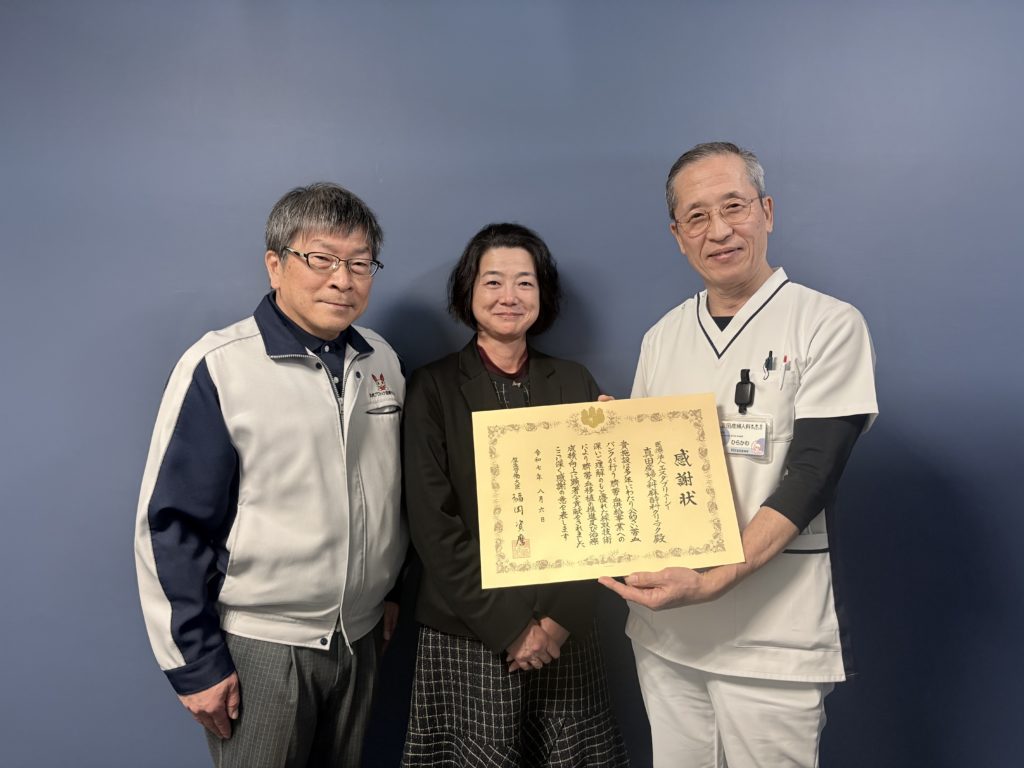 さい帯血バンク事業への貢献により感謝状をいただきました